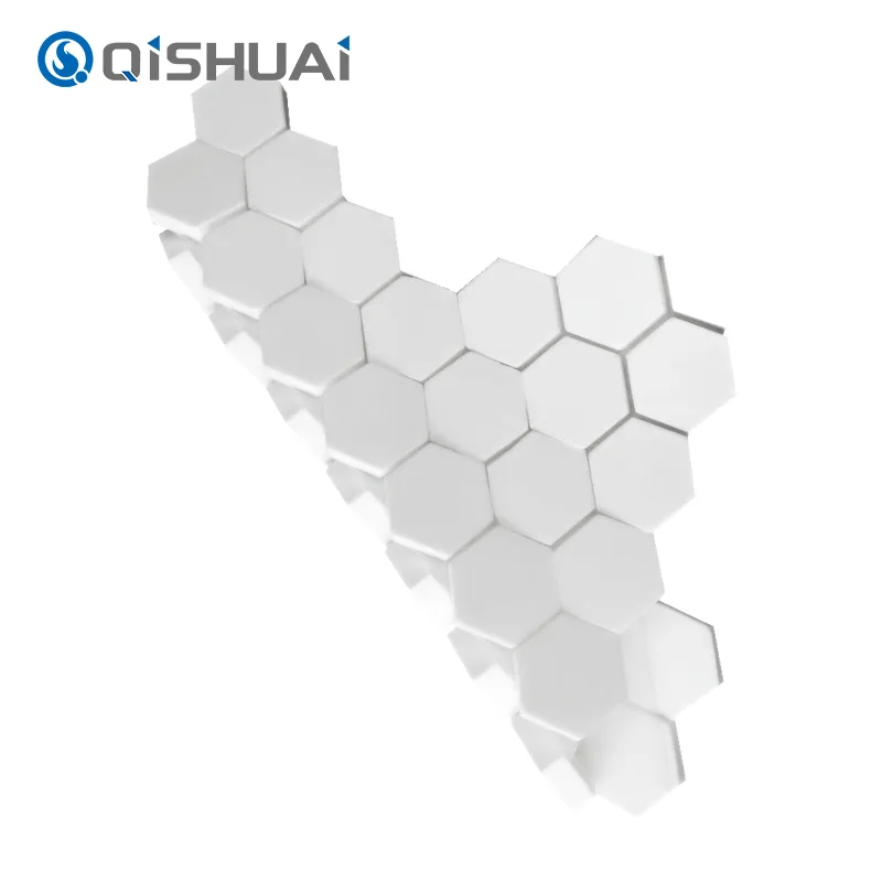 A Shandong Qishuai Kopásálló Equipment Co., Ltd. kiváló minőségű hatszögletű alumínium-oxid kerámia mozaikja, az ábrán látható módon, jellegzetes hatszögletű kialakítással rendelkezik, amely megkülönbözteti őket a szokásos négyzetes vagy kör alakú csempéktől. Minden hatszögletű alumínium-oxid kerámia mozaik csempe sima, lefolyó élekkel büszkélkedhet, és a gyönyörű részletek jól láthatóak.