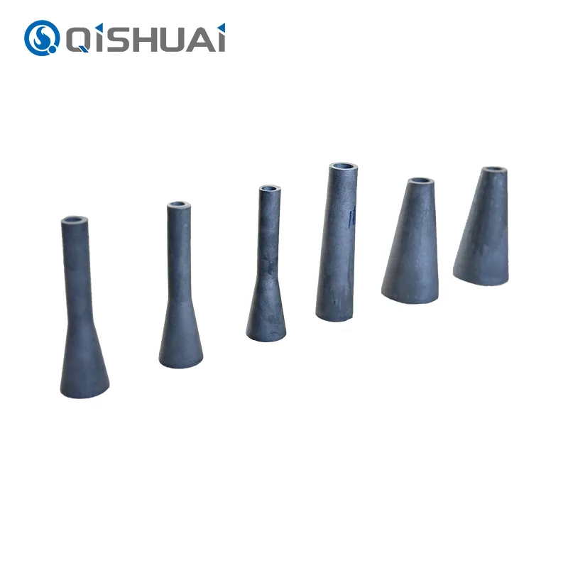 A Shandong Qishuai Wear-Resistant Equipment Co., Ltd. nagy tisztaságú szilícium-karbid anyagokból gyárt Sic fúvókákat. A gyártás fejlett szinterezési technikákat alkalmaz. Ez az anyag kivételes keménységet mutat. A keménység erős kopásállóságot biztosít. A fúvókák kiváló teljesítményt mutatnak a nagy kopással járó feladatoknál. Ezek a feladatok közé tartozik a homokfúvás, a permetezés és a vágás. Kis mennyiségben a szilícium-karbid kristályok formájában stabil szerkezetet tartalmaz. A szerkezet erős kötést tartalmaz az atomok között. Ez lehetővé teszi a szemcserészecskék ütésállóságát. Lehetővé teszi ezeknek a részecskéknek a kopásállóságát. A hatás az, hogy a kopás mértéke jelentős csökkenést mutat.